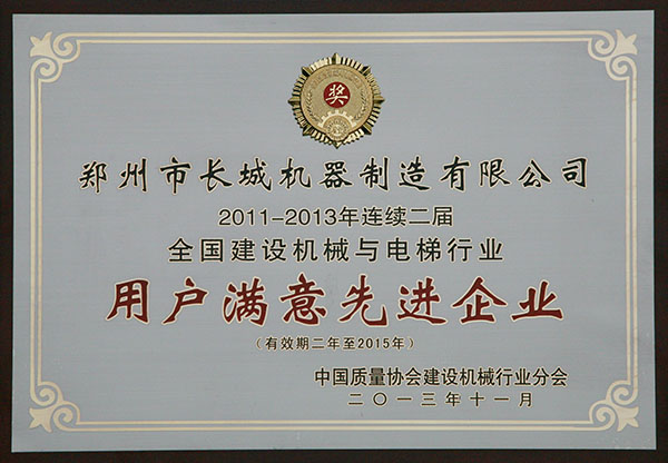 用戶滿意先進企業(yè)證書