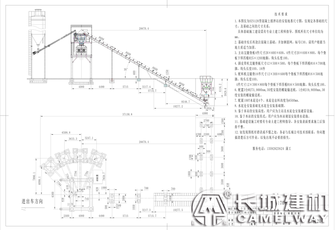 該120混凝土攪拌站布置圖,是根據(jù)用戶場地實際測量后進(jìn)行布置的,該用戶土地不規(guī)則,呈L型走向,說以攪拌站主題,砂石料場布局到內(nèi)部左側(cè),混凝土運輸罐車放置到L型頂部,然后辦公樓,生活區(qū),實驗室等放到一起,并利用綠化帶將它們隔離。