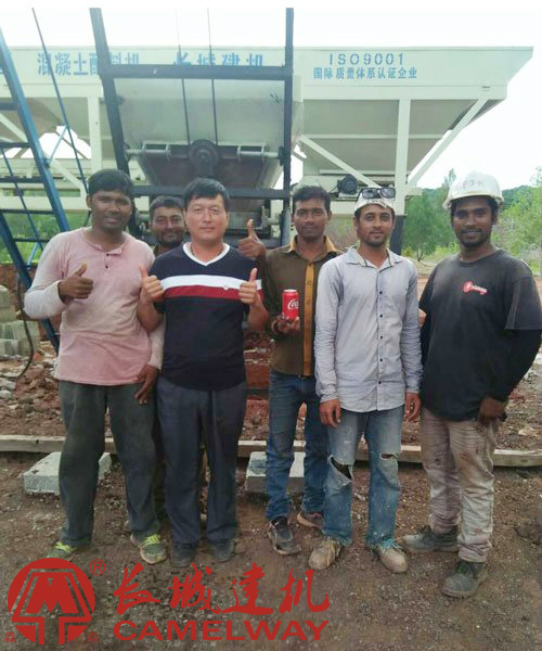 hzs25混凝土攪拌站帕勞項目安裝調(diào)試 客戶為長城建機豎起大拇指